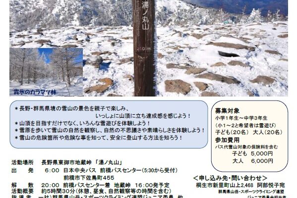 ※(一社)群馬県山岳・スポーツクライミング連盟所属の方は参加費500円OFFとなります。参加費は当日持参願います。領収書が必要な場合はお申し出ください。